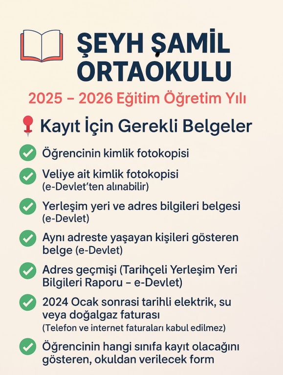 5.Sınıf Kayıtları İçin İstenen Belgeler