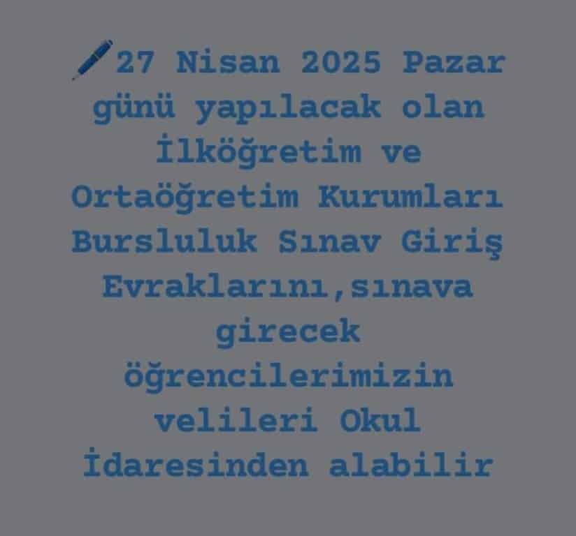 İLKÖĞRETİM VE ORTAÖĞRETİM KURUMLARI BURSLULUK SINAVI (İOKBS) Giriş Belgeleri