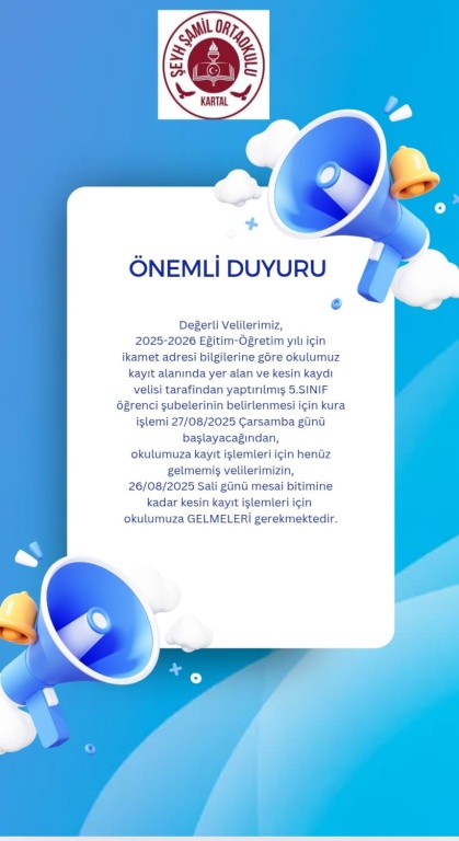 5.Sınıf Kayıtları İçin İstenen Belgeler